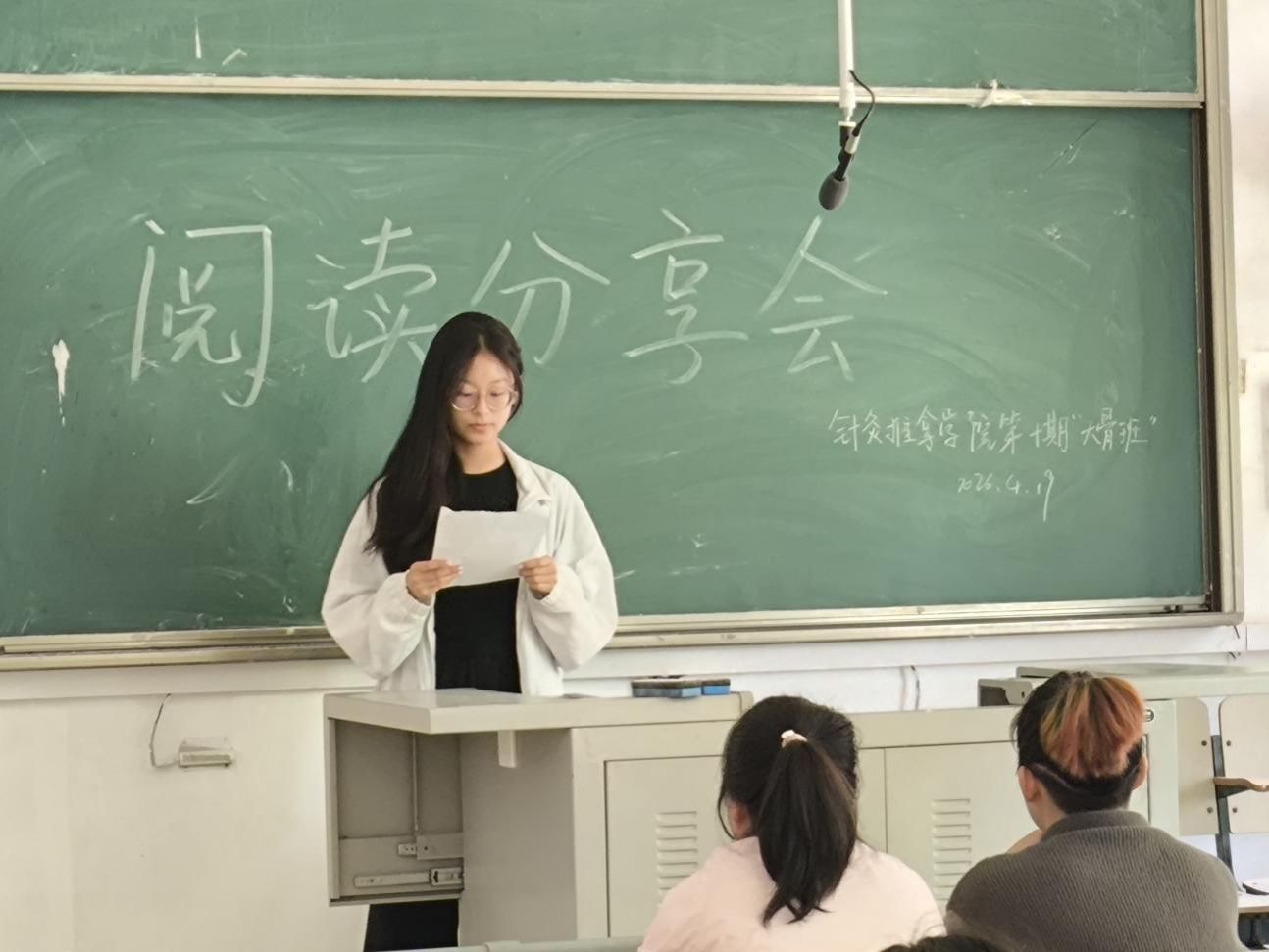 江中新闻网讯(通讯员 李静 胡佳瑜)青春年少好读书,挺膺担当正当时。为深入落实团中央阅读行动要求,结合“立报国强国大志向,做挺膺担当奋斗者”主题教育,进一步厚植青马学员理论素养与家国情怀,针灸推拿学院第十期青马工程“大骨班”于4月19日在湾里校区明志楼2103举办“青春年少好读书,争做青春领读人”主题阅读分享活动。全体青马学员以书为媒、齐聚一堂,在墨韵流淌中开启了一场思想与成长的对话,更是一次报国志向与担当精神的青春淬炼。