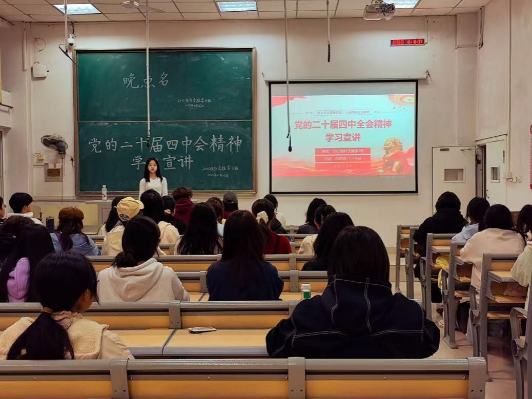 在宣讲会中,宣讲者紧扣全会核心要义,通过PPT图解等直观的方式,生动形象地解读了党的二十届四中全会的重要意义和精神实质等重点内容,深入学习领会了习近平总书记在党的二十届四中全会上的重要讲话精神。各团支部的宣讲内容解读精准透彻,语言生动鲜活。同时,学院团员青年们紧盯学习重点、详细记录要点,展现出求真务实的学风与积极向上的精神风貌。