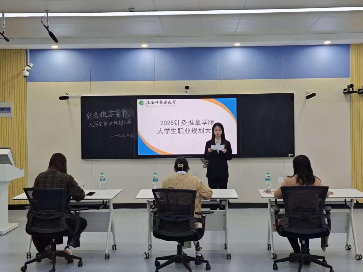 江中新闻网讯(通讯员 张荣海)为助力学生明确职业方向、提升就业竞争力,促进高质量充分就业。11月20日,针灸推拿学院在立德楼1302、1304举办2025年针灸推拿学院大学生职业规划大赛院决赛。
