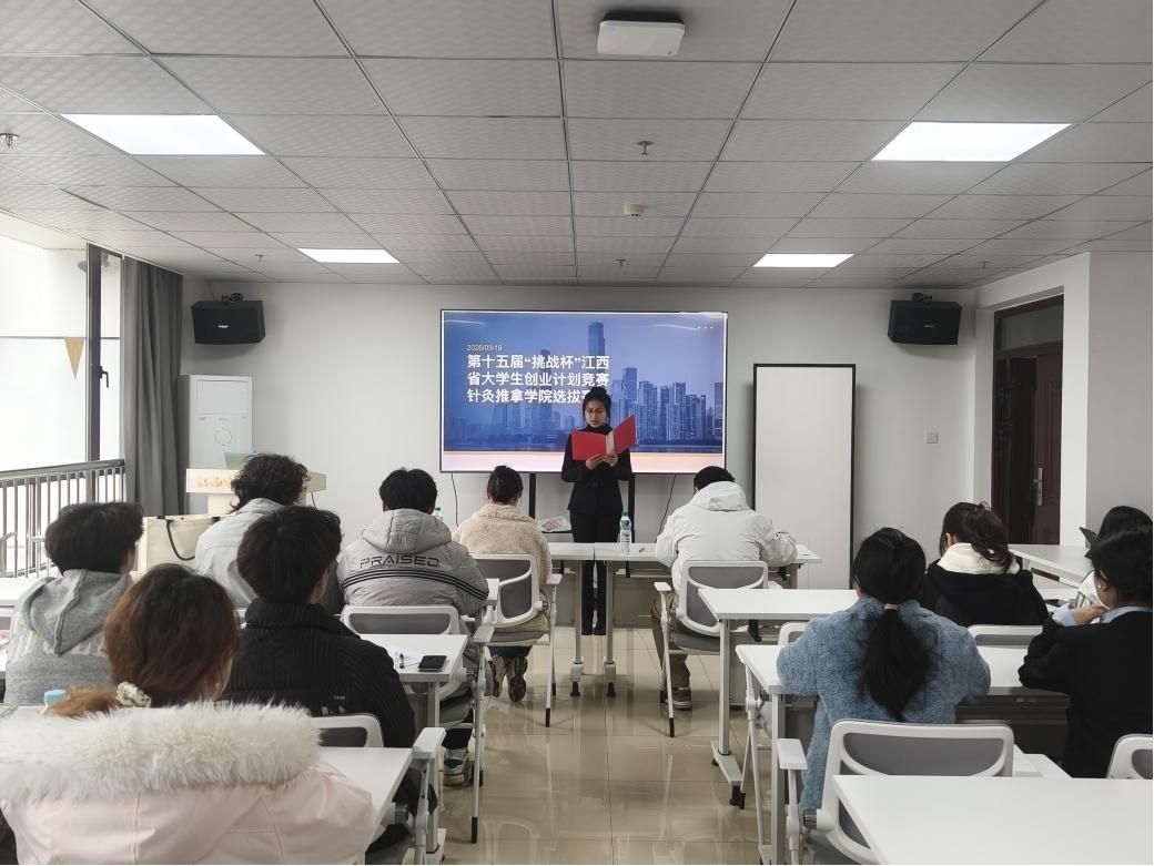 江中新闻网讯(通讯员 张荣海 李静 童韵)为激发学生创新精神,培育创业意识,提升实践能力,引导青年学子将专业所学与国家发展、社会需求相结合,立报国强国大志向、做挺膺担当奋斗者。3月19日,针灸推拿学院团委在大学生创新发展中心414举办第十五届“挑战杯”江西省大学生创业计划竞赛学院选拔赛。