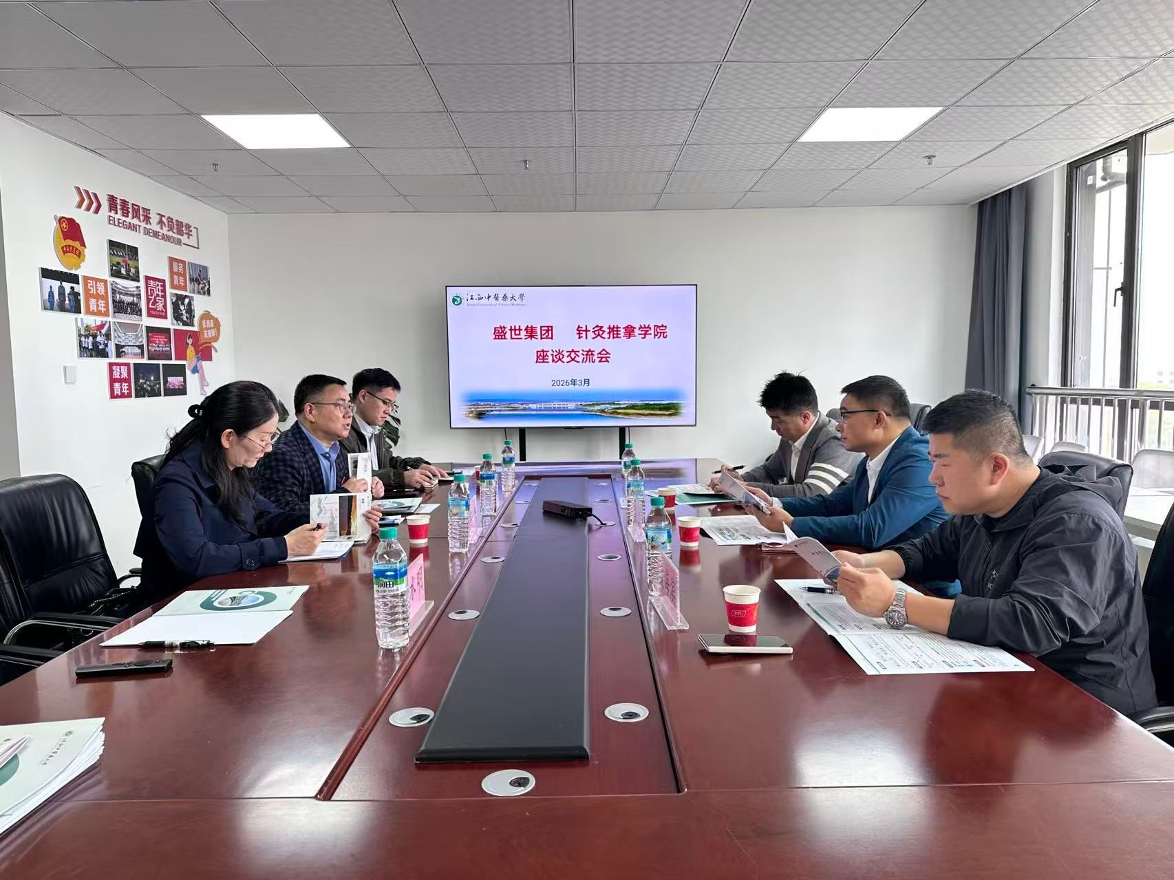 江中新闻网讯(通讯员 熊水明)为深入推进产教融合、校企协同发展,搭建人才培养与产业需求对接的坚实桥梁,3月28日,盛世集团股份有限公司一行莅临针灸推拿学院考察交流。双方在大学生创新发展中心420会议室举行座谈,围绕人才定向培养、实习就业基地共建、产学研项目对接等核心议题深入磋商。