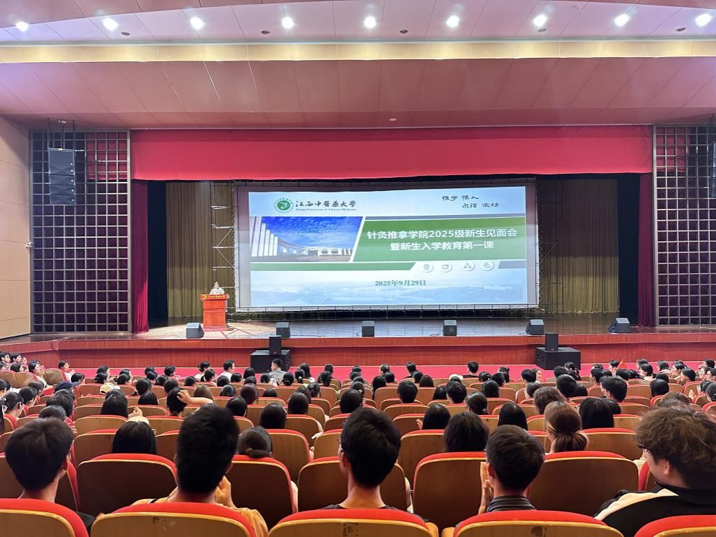 在见面会上,学院党委负责人从“为什么要上大学”“如何规划大学生活”等多个角度对新生们提出了殷切希望:一要坚定理想信念,胸怀“国之大者”;二要锤炼高尚品德,恪守医德医风;三要练就过硬本领,勇于追求卓越。他强调,学院将全力为同学们的成长成才保驾护航,并预祝大家在针灸推拿学院度过充实、精彩、无悔的青春岁月。学院行政负责人详细介绍了学院的历史沿革、办学特色、发展成就、学科建设与未来发展蓝图。她表示,学院拥有深厚的学术积淀和优质的教学资源,必将为学生的专业学习和个人发展提供坚实可靠的平台。学院教学工作负责人从“学什么”“怎么学”“成为谁”三个方面,聚焦学业适应与路径规划,详细解读大学学习与高中阶段的差异,提醒新生尽快摆脱“被动接受”的学习模式,主动利用图书馆、实验室、学术讲座等资源,构建完整学科知识体系,同时提前了解考研、就业、出国深造等发展路径,为未来做好准备。学院学生工作负责人从学业、生活、综合素养三个维度出发,叮嘱新生平衡学习与生活,在集体中学会包容互助,通过志愿服务、社团活动等提升综合素养,扛起成长责任。同时,25级新生辅导员和学生代表向新生们表示热烈欢迎,表达了对全体新生的殷切期盼。