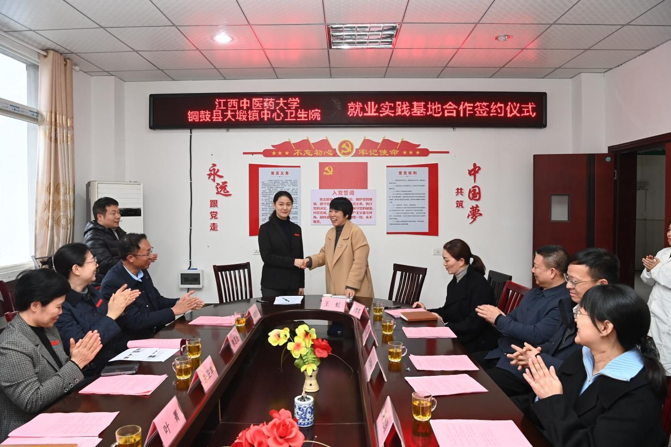 会上,针灸推拿学院与铜鼓县大塅镇中心卫生院签署了《江西中医药大学热敏灸产业学院与大塅镇中心卫生院共建教学实践基地合作协议》《江西中医药大学针灸推拿学院与大塅镇中心卫生院共建就业实践基地合作协议》。