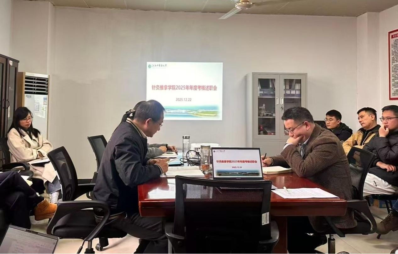 江中新闻网讯(通讯员 侠娇娇)12月22日,针灸推拿学院召开2025年度教职工述职大会。会议全面总结年度工作成效,凝聚发展共识,进一步锚定学院整体工作效能优化目标。学院领导班子成员及全体教职工参加会议。